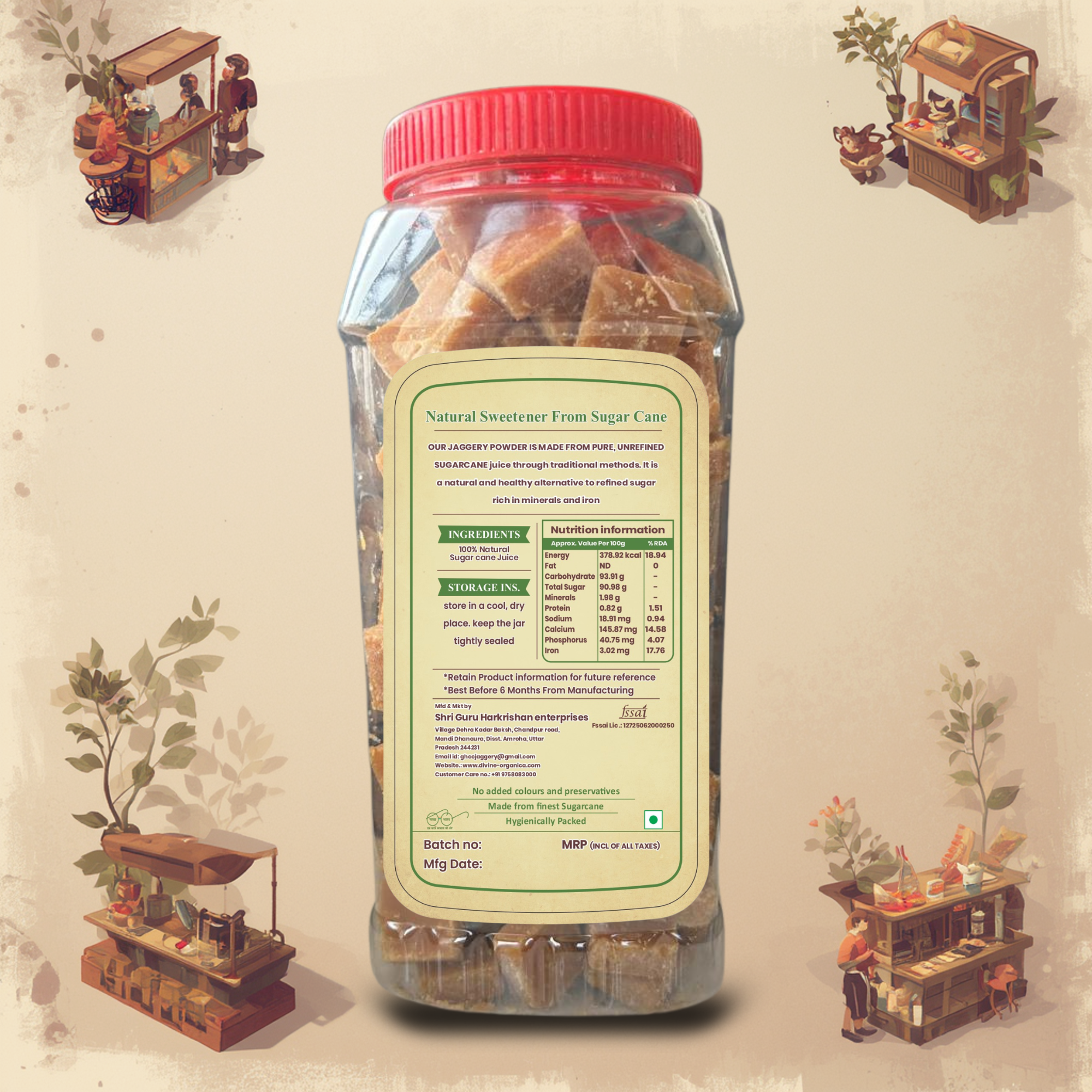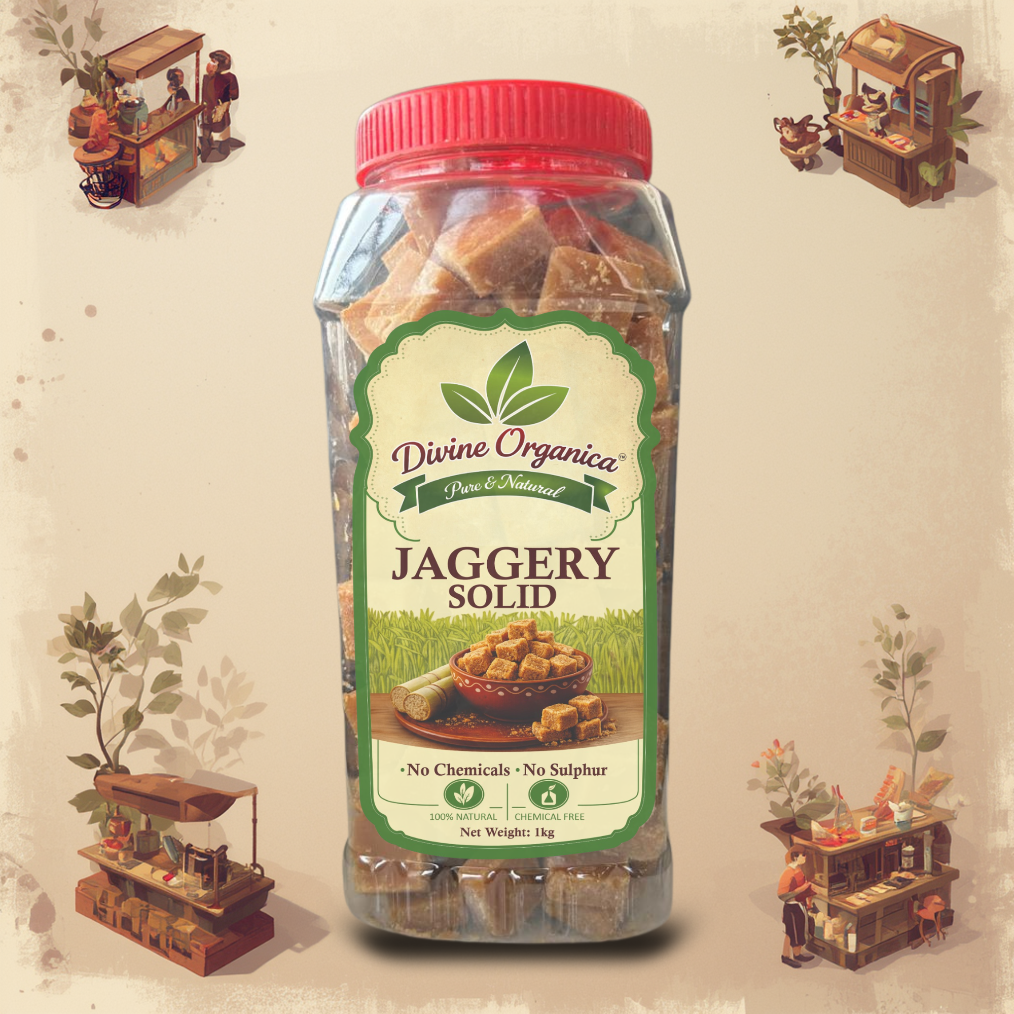 Keep in a cool, dry place. In humid weather, solid jaggery can “sweat” or soften; storing it in an airtight glass jar will keep it fresh and firm for months.